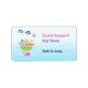 Address labels for a baby shower with a cute nursery style illustration with an ark filled with wild animals and a butterfly flying overhead and a friendly whale spouting water below. Some blue clouds float on by. Set on a light blue ombre background.