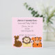 A delightful birthday invitation accented by three cute animals a teddybear, a lion and a tiger. A fun way to get kids excited about a birthday party. Customise with all your own information as desired.