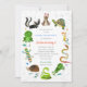 The perfect birthday invitation for any child who loves animals! Included on this invitation are a variety of animals like a bunny, tortoise, snakes, frogs, lizards, skunk, and hedgehog. This invitation is great for an Animal Show birthday or for any kid who loves all animals!