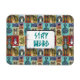 A quirky flexible magnet which says "Stay Weird" in the centre. Designed with a unique and colourful collection of folk art style animals in a collage pattern. A variety of animals are found in this creative artistic design, which include a cobra, lion, dog, lizard, ostrich, zebra, rabbit, gecko, donkey and owl. This design has a unique style with a quaint and weird eccentric flair. I like it!