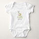 The babygrow/bodysuit features a painting of a baby dear, done in watercolour paints, with light brown coloring. The deer is stood in grass and pink flowers with long stems. It is placed in the middle of the front of the bodysuit.