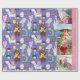 Add a custom touch to your child's birthday party with this adorable personalised wrapping paper. Gift wrap has a pattern of animals, such as zebras, bears, alligators, and rabbits. The background is colourful and bright purple and pink. Add two custom messages, such as happy birthday and your little one's name and age, and four of your favourite photos.