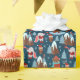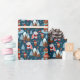 Add a cute seasonal touch to your holiday gifts with this adorable custom blue and white Christmas wrapping paper. Gift wrap has a pattern of a festive brown bear ice skating, an owl wearing a Santa hat and glasses, a bird on a snowy mountain, a bunny playing a trumpet, and Christmas trees in the snow. Add your family last name or a first name for a personalised touch. (Name may be removed per your preference.)