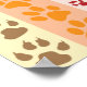 A cute design with several rows of animal paw prints in natural colours like brown, yellow, red and orange on a striped pattern. Some paws have claws and others do not.