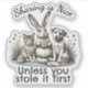 Super cute animals eating stolen cookies on this funny sticker for your phone, laptop or other electronical doohickeys, books, ride, luggage, drink cup or forehead, it features a bunny, kitten or cat, and puppy looking guilty for stealing treats, or you can turn it into a sappy, whimsical sticker by changing the text, up to you!