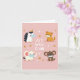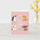 This get well soon greeting card is absolutely adorable! 🌟 Picture a pastel pink background with four cute cartoon animals wearing medical masks in a circular pattern around the centred text "GET WELL SOON" written in a handwritten-style font. At the top left, a serene white unicorn with a black mane and gold outline is wearing a white mask, while at the top right, an orange cat is playfully upside down and also wearing a mask. The bottom left features a sweet white elephant with pink cheeks and eyelashes, and the bottom right showcases a cuddly brown koala - both wearing their white masks with eyes closed. Gold and pink stars are scattered throughout, adding a touch of magic to this heartfelt card. 🦄🐱🐘🐨🌸