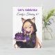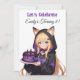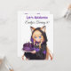 Cute birthday invitations for a girl's birthday party. A sweet anime girl in a fox ears hoodie holding a purple and black birthday cake. On the back is a cute anime dragon and your birthday party details.