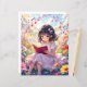 A sweet illustration of a little anime girl reading a book. She is surrounded by lovely nature with pink and purple flowers and musical notes floating above her. If your child likes anime, reading and music is perfect! Just stick it in a frame and you have adorable wall art for your daughter!
