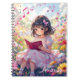 A sweet illustration of a little anime girl reading a book. She is surrounded by lovely nature with pink and purple flowers and musical notes floating above her. If you or your child likes anime, reading and music this is perfect!