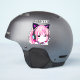 Personalised stickers with name or quote. Cute pink, teal and purple little anime girl with sad eyes and wearing headphones. Cute for gamers or music lovers.