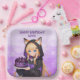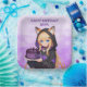 Cute personalized birthday paper plates for a girl's birthday party. A sweet anime girl in a fox ears hoodie holding a purple and black birthday cake.