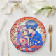 Adorable anime boy and girl couple bride and groom with red and blue flowers and hearts wedding paper plates.