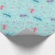 Cute ants wrapping paper in pastel tones featuring a vector illustration of three ants in blue, purple and pink colour surrounded by colourful leaves over light blue background. this pretty and fun design will appeal to a person who loves these amazing insects, wildlife and nature.