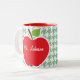 Cute Apple on Sea Green Houndstooth Two-Tone Coffee Mug
