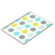 Cute pattern of aqua blue, mint, yellow and grey polka dots.