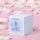 A mini favour box 2 inch by 2 inch. Designed with a photograph of a white arctic fox. A wintery snowy landscape surrounds this delightful creature.