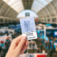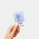 Name badge with a photograph of a white arctic fox. A wintery snowy landscape surrounds this delightful creature.