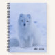 A spiral notebook with a photograph of a white arctic fox. A wintery snowy landscape surrounds this delightful creature.