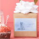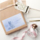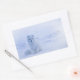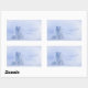 Sticker with a photograph of a white arctic fox. A wintery snowy landscape surrounds this delightful creature.