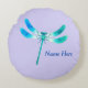 Cute as a Bug Blue Green Dragonfly on Violet Round Cushion