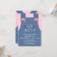 Cute as a button baby shower for baby girl. Country denim overalls with pink gingham shirt and a lollipop in the back pocket, baby shower invitation. Perfect for baby girl, farm themes or rustic country baby showers.