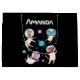 Gift bag with an image of astronaut animals in see-through helmets floating in space. Giraffe, mouse, cat & rabbit. So adorable and fun.