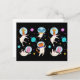 A postcard with an image of astronaut animals in see-through helmets floating in space. Giraffe, mouse, cat & rabbit. So adorable and fun.