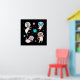 A poster with an image of astronaut animals in see-through helmets floating in space. Giraffe, mouse, cat & rabbit. So adorable and fun.