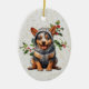 Cute Aussie Cattle Dog Christmas Holly Ceramic Ornament