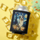 Cute Australian Shepherd Dog Halloween Jack O Lantern Pumpkin Face Starry Night Van Gogh Style