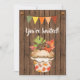 This Autumn Birthday Party Invitation features a cute cupcake decorated with a candy pumpkin, acorns and colourful leaves. There is also a bunting banner with acorns and a faux wooden background.
