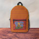 A cute backpack for kids with a cartoon fox and a fall colour stripe pattern . Personalise it with the child's initials . Look in our collection for addition bag option or for a matching lunchbox .