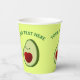 Cartoon style avocado with red heart. Custom decorative paper cups for party decor. Edit text to customise. Gift idea for avocado lovers.