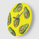 Add a fresh and fun touch to your walls with this adorable avocado print wall clock. Featuring a vibrant and whimsical pattern of sliced avocados on a cheerful yellow background, this decorative timepiece is the perfect blend of modern art and playful functionality. Designed for foodies, health enthusiasts, and lovers of 'kawaii' aesthetics, it makes a stunning focal point in any sunny kitchen, breakfast nook, or children's nursery. Crafted with high-quality printing, this unique clock not only keeps you on schedule but also brings a pop of colour and personality to your home. It's a fantastic housewarming gift for vegan friends or a delightful surprise for anyone who loves avocado-themed decor.