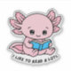 For readers who can never get enough books, this adorable axolotl sticker celebrates the joy of getting lost in a good story. Featuring the playful phrase "I Like to Read A Lotl", this original hand-drawn character captures the quiet charm of a book lover in a soft kawaii-inspired style.