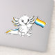 This endearing axolotl proudly waves its AroAce (aromantic and asexual combined) Pride flag. Also called the "sunset flag," its orange, yellow, white, light blue, and deep blue colours represent the unique variety of the aspec identity, including love, wholeness, relationships, and community. Let this sweet little critter's big eyes and contagious smile cheer you on as you proudly celebrate your authentic self at Pride and all year long!