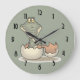 Cute Baby Alligator Cartoon Hatching from Eggshell Large Clock