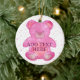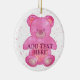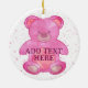 Cute Baby Bear In Pink Custom Text Ceramic Ornament