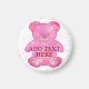 Cute pink baby bear watercolor. White background with pink paint splatter. Custom magnets. Gift idea for bear lovers of all ages.