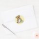 A cute baby bear holding a baby bottle and a baby rattle at his feet, in pinks and pale greens, and blue…perfect sticker for a baby shower or baby gift! Background of the sticker is a soft yellow, matching baby shower invites, thank you notecards, and postage available!