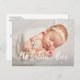 an adorable photo design with white script lettering. You can upload your own baby's image and edit the text details.