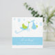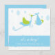 Cute Teal Blue baby shower invitations. Featuring a stork carrying a boy. Personalised Wording included.