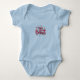 The baby body suit design features the phrase "I am the cutest" in bold, pink letters with a playful, handwritten style. The text is surrounded by a scattering of colourful hearts and stars, adding to the cute and cheerful vibe. The overall design is simple yet eye-catching.