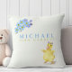 Our beautiful soft pillow with a pastel background is adorned with a watercolor blue floral and cute little yellow duck. Customise the front with baby's first, middle and last name. It is the perfect for a nursery. View our full baby collection in our Zazzle store!