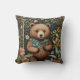 Cute Baby Brown Bear William Morris Inspired Cushion