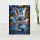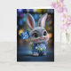This adorable encouragement card features a fluffy gray baby bunny dressed in embroidered blue overalls, proudly holding a tiny “You Can Do It!” flag. Set against soft, colorful lights, this design delivers a warm, uplifting message perfect for anyone facing a challenge or needing a boost. Sweet, inspiring, and irresistibly cute — a card guaranteed to brighten someone’s day.
