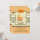 A beautiful arrangement of colours and patterns combine to create this adorable baby shower invitation featuring a sweet baby carriage.