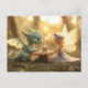 Cute Baby Dragon and Fairy Enjoying Tea Holiday Postcard