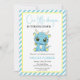 Cute Baby Dragon Blue Stripes Birthday Invitation