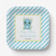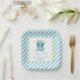 Cute Baby Dragon Blue Stripes Birthday Paper Plate